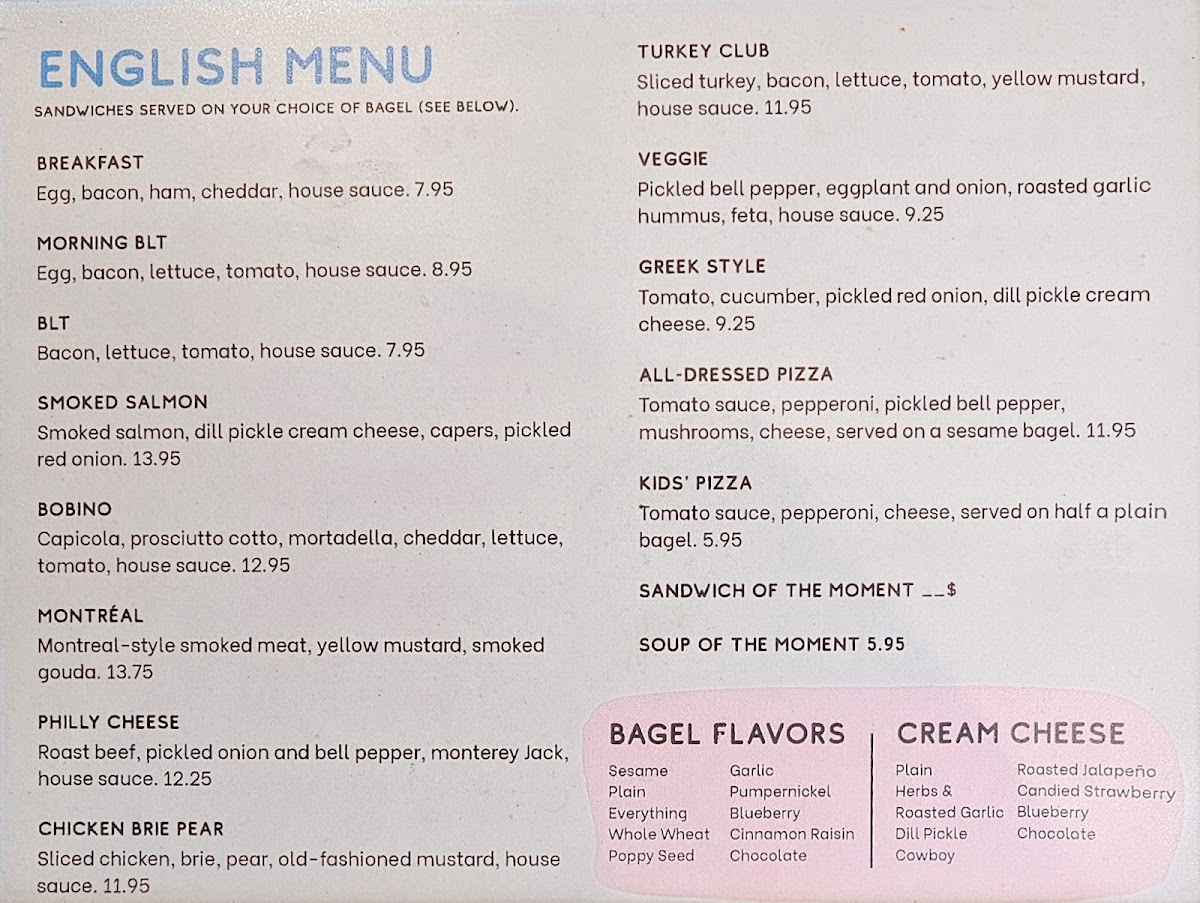 Bobino Bagel Menu